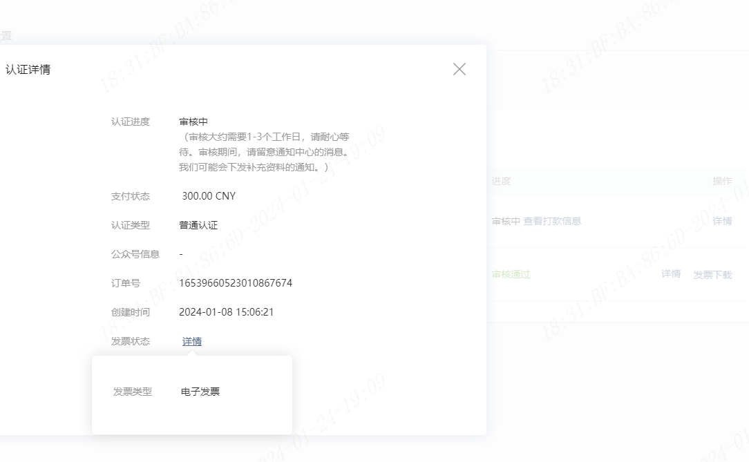 为什么微信认证通过了,但是状态还是审核中,打款信息那边也不给我开票?