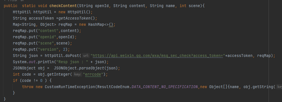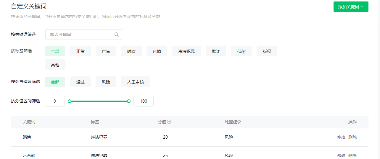 结果:{"errcode":0,"errmsg":"ok","detail":[{"strategy":"keyword","errcode":0},{"strategy":"content_model","errcode":0,"suggest":"pass","label":100,"prob":90}],"trace_id":"65f93a16-2a716615-58300ac2","result":{"suggest":"pass","label":100}}