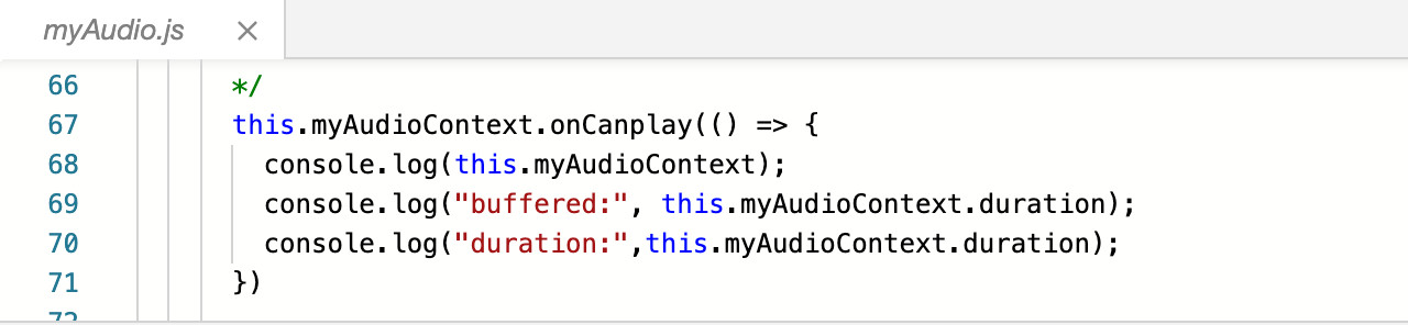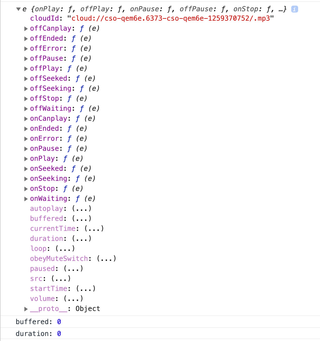 InnerAudioContext.onCanplay 中 输出的音频实例中的duration和buffered不为0, 但是直接输出duration 和 buffered 却是0.