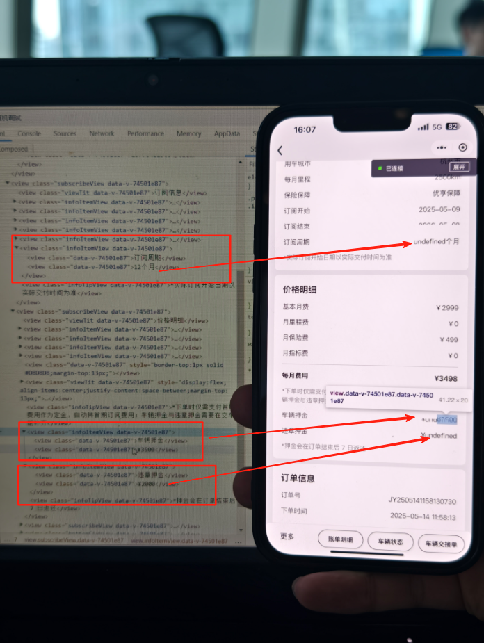 实际状况及手机复现版本如图所示,在本地调试环境中html标签里面已经有内容,但是手机上展示有时是空白 有时是undefined,页面就是一个详情展示的页面,当然里面状态会比较多,会有七到八个v-if判断