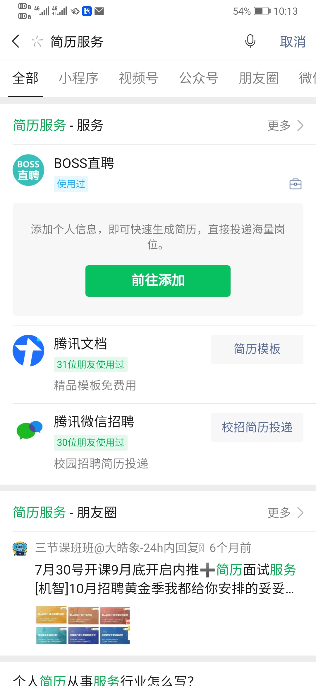 微信搜一搜里的服务槽位接入,从后台看暂时没有招聘类目,可是boss直聘的小程序是已经开通了简历服务的,请问这是怎么做到的?为什么我们申请不了呢?