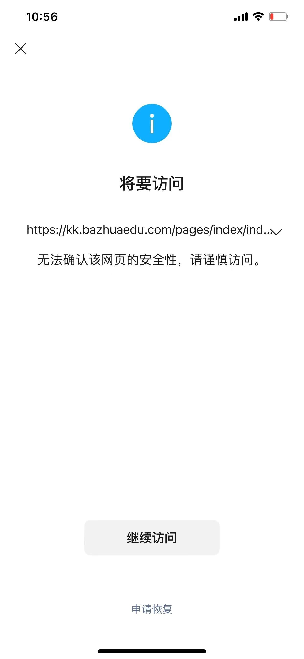 你好,经审核,域名【bazhuaedu.com】下的链接【https://kk.bazhuaedu.com/】的内容存在违反《微信外部链接内容管理规范》的第1条“诱导分享类内容”,请对相关内容修改后进行申诉;申诉方式可点击停止访问页底部入口进行操作,我们会在三个工作日处理,请耐心等待。 详细规则请参考《微信外部链接内容管理规范》http://weixin.qq.com/cgi-bin/readtemplate?t=weixin_external_links_content_management_specification