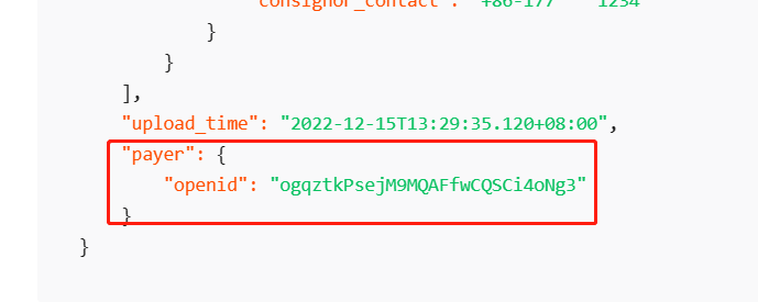 { "order_key": { "order_number_type": 2, "transaction_id": "4200001967202308073647021363", "mchid": "1647609251" }, "logistics_type": 4, "delivery_mode": 1, "shipping_list": [ { "item_desc": "玉米面条1个" } ], "upload_time": "2023-08-07T17:16:31+08:00", "payer": "wx07********************0000" }