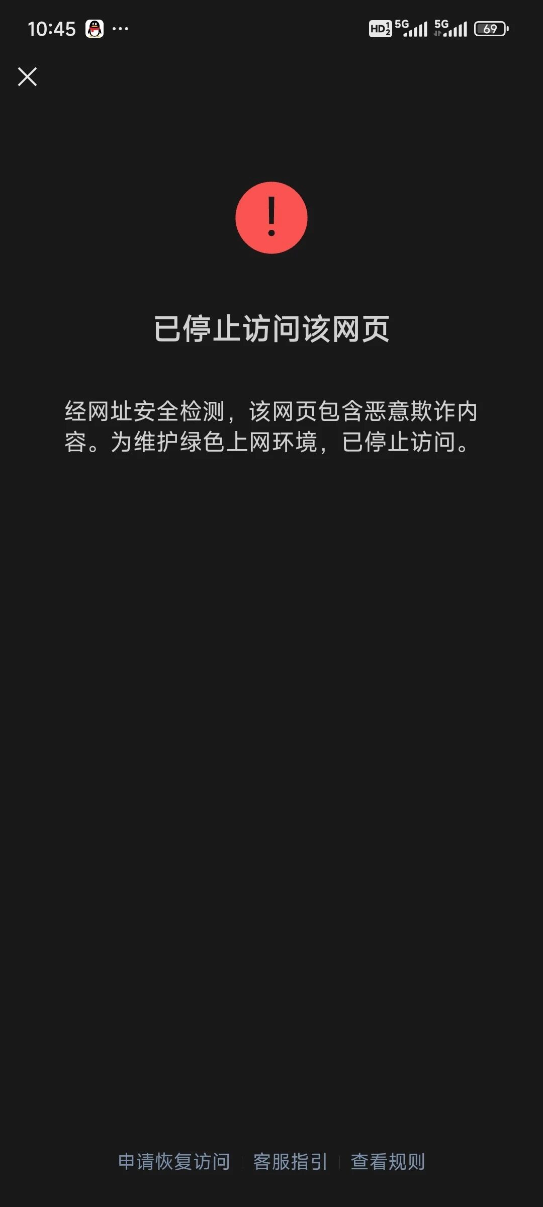你好,链接【https://s.ycyzydkj.com/sw/web/index.html】被手机管家拦截,此处仅处理被微信限制访问的链接的申诉请求及相关事宜,此服务不在受理范围,建议登录手机管家官网【http://gj.qq.com/online_server/complain_url.html】自行处理,请知悉。