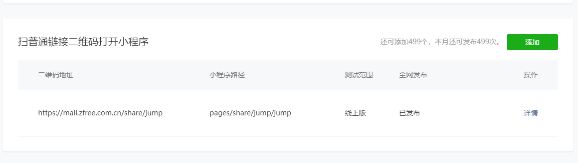 后台管理配置通链接二维码打开小程序,规则配置一直提示“不可配置此规则”,很久前配置过一条体验版二维码规则已删除掉了,目前只配置了一条发布了的正式版规则,与新发布的规则链接不同,但一直提示“不可配置此规则”
