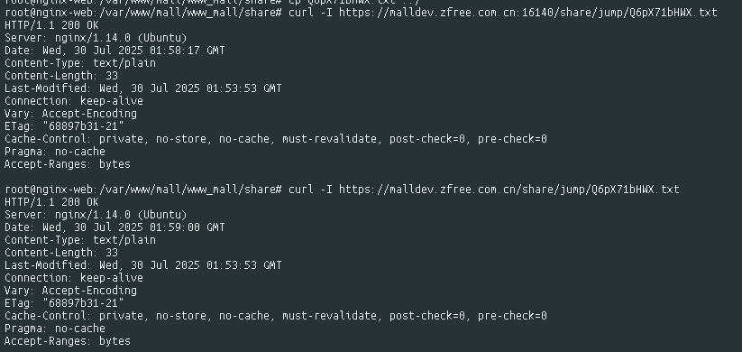 :16140端口(仅保留https://malldev.zfree.com.cn/share/jump),校验文件也提示失败,但执行校验命令都是可以获取数据curl -I https://malldev.zfree.com.cn:16140/share/jump/Q6pX71bHWX.txt