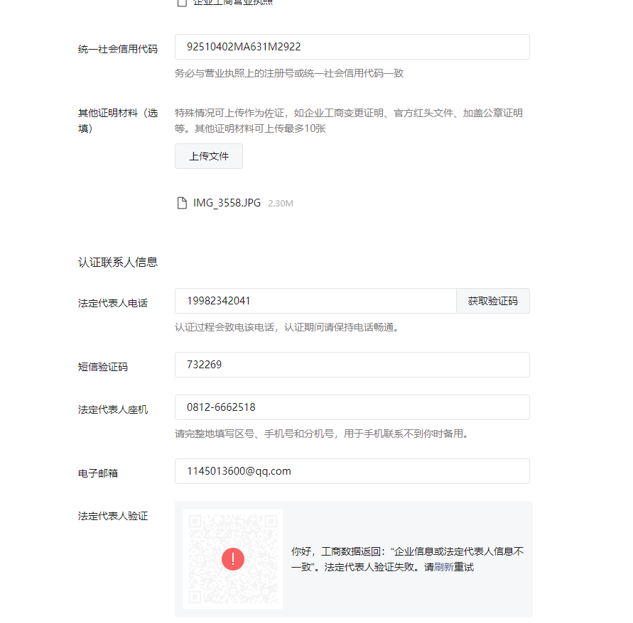 一直提示:法定代表人信息不一致!