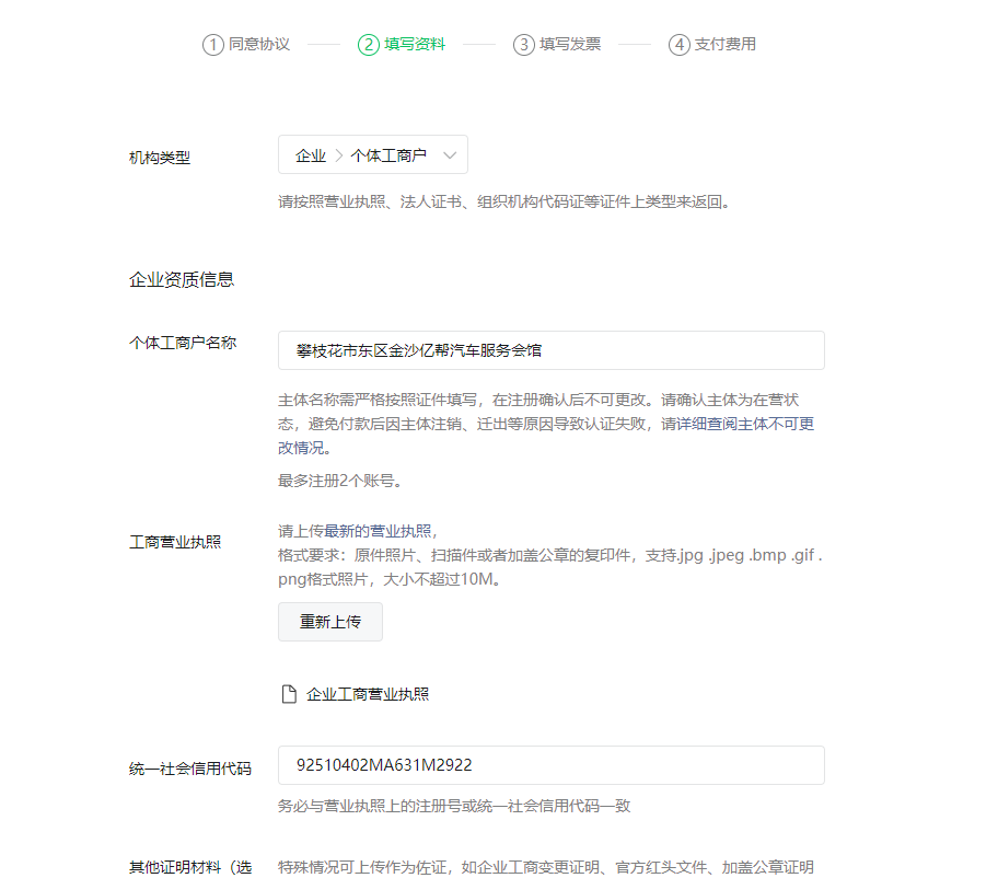 进行微信认证的时候一直失败,已复查填写信息无误
