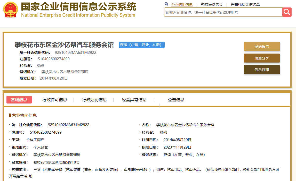 名称:攀枝花市东区金沙亿帮汽车服务会馆