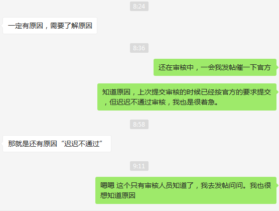 这个迟迟不通过的原因,希望官方能告知!谢谢!