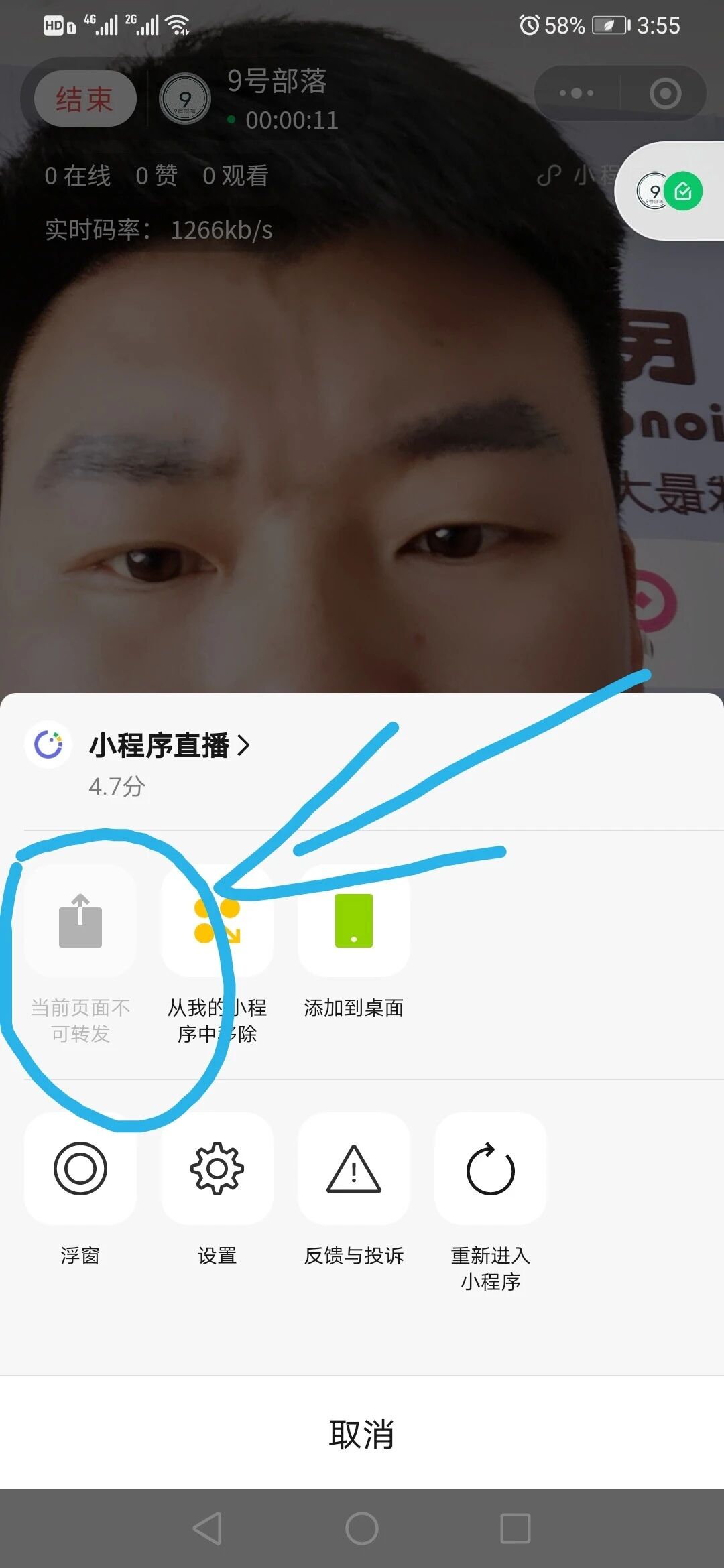 未开播之前是可以通过右上角分享的,开播之后分享朋友和分享朋友圈变成灰色了