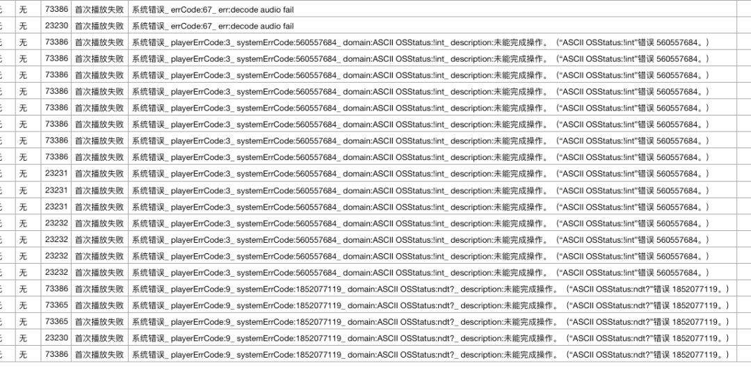 背景音频播放失败,系统错误概率很高,特别是iOS设备上,出现系统错误的几率大,再次播放又能成功。