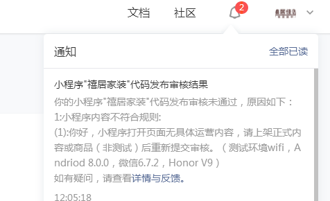提交三次,都以同一个理由驳回小程序打开后只有title和底部button,无具体运营内容,无法体验实际服务