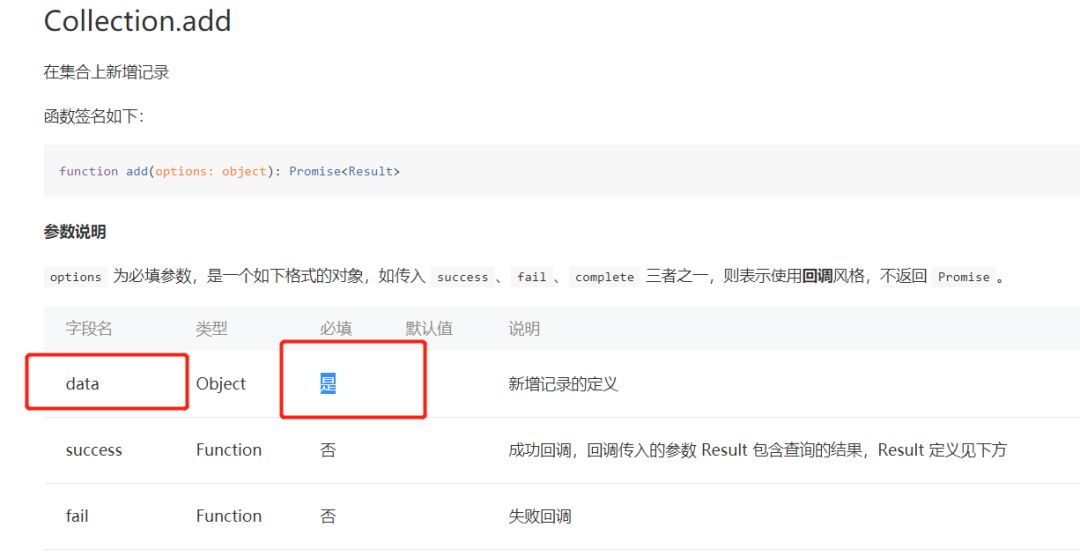 文档定义,add添加一个对象,对象的data属性是必须的。