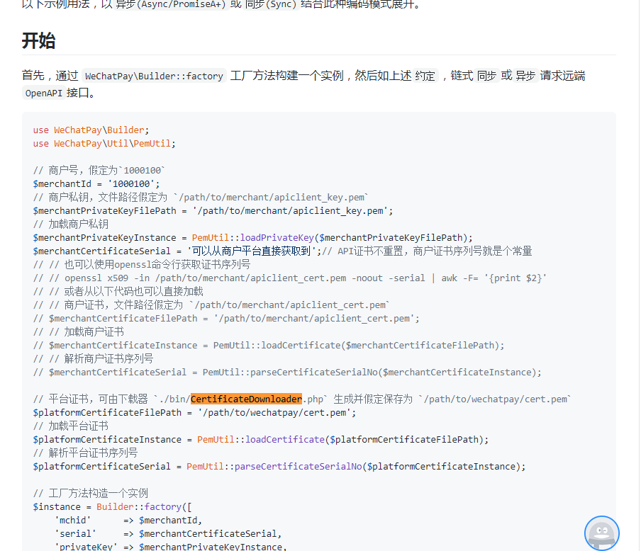 wechatpaySDK github上的使用说明 平台证书,可由下载器 `./bin/CertificateDownloader.php` 生成并假定保存为 `/path/to/wechatpay/cert.pem` 这个下载器到底在哪里怎么用 PHP 使用黑窗还是composer 还是代码来解决 怎么获取这个平台证书??????????? github地址https://github.com/wechatpay-apiv3/wechatpay-php