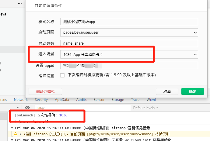 =========== 已经在开发者工具中设置场景值