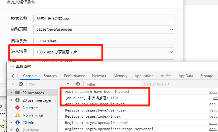 ========== 但是在手机端进行真机调试的时候,场景值失效,恢复为1101