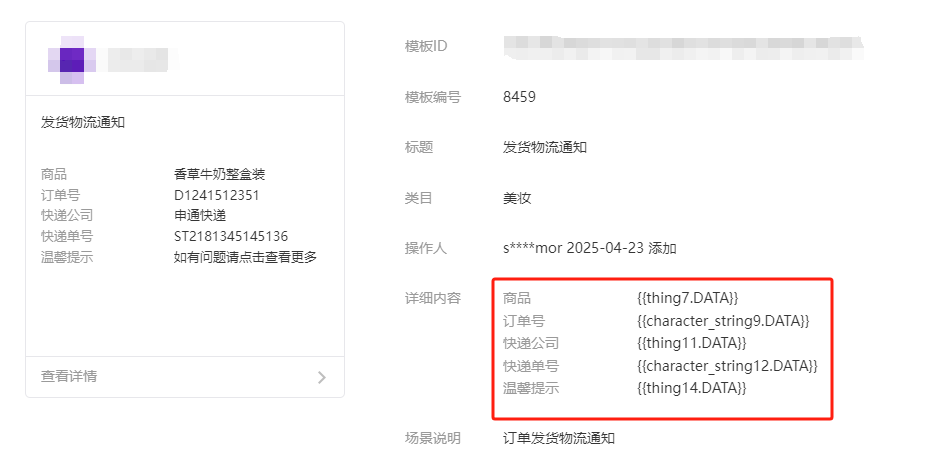 正常的模板有详细内容,能看到参数是什么类型和怎么传值