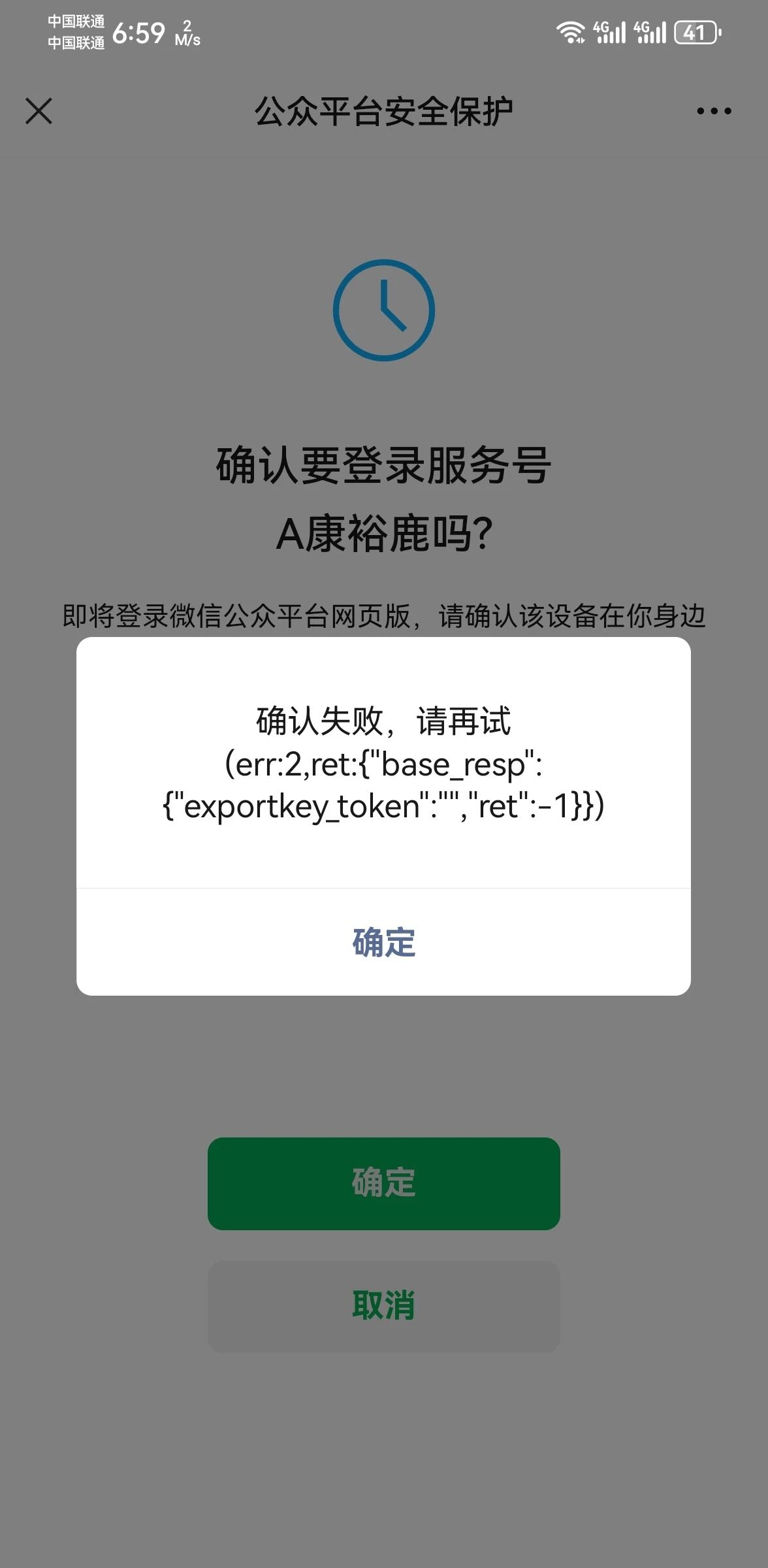 管理员登录公众号平台,在选择运营的服务号时,出现二维码失效,多次尝试后,选择账号登录,输入正确的账号密码后,跳转管理员扫码确认时,管理员微信提示报错。请问这是什么原因