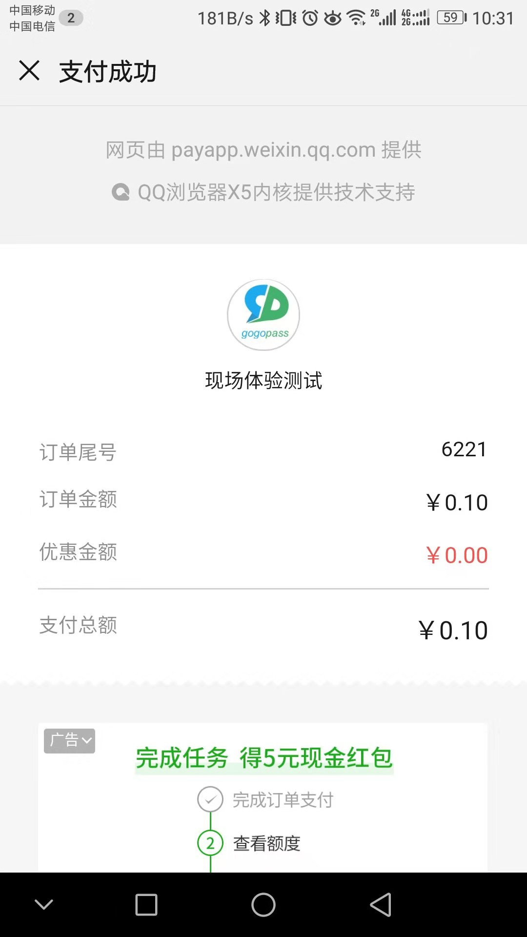 支付后,点击确定就出现了这个页面,能不能关掉