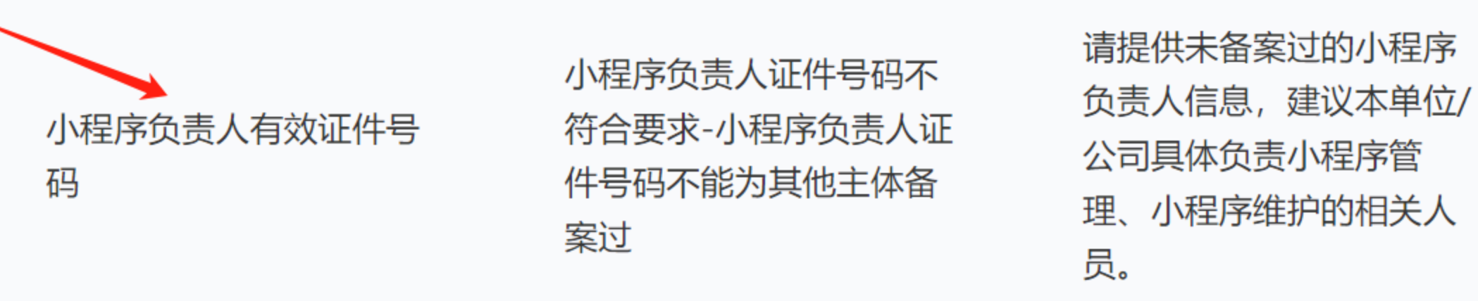 1、小程序备案被驳回,原因:小程序负责人证件号码不符合要求-小程序负责人证件号码不能为其他主体备案过