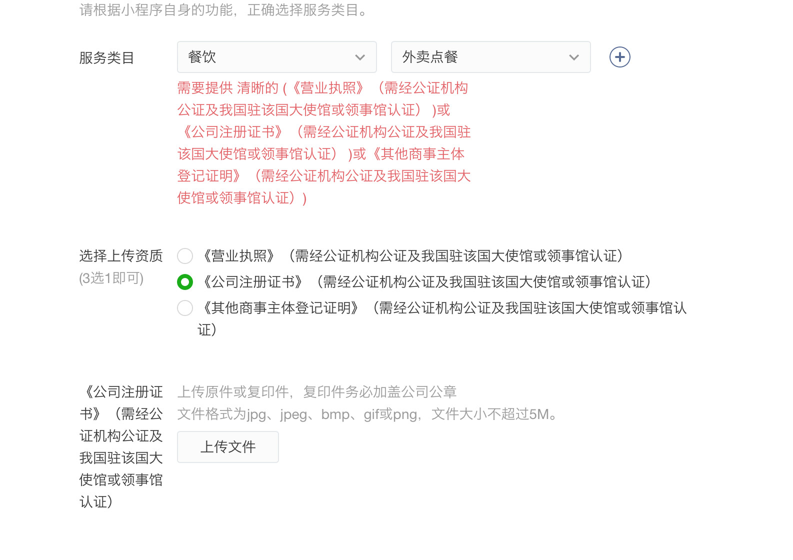 2.我们需要申请的小程序类目是:餐饮-外卖点餐