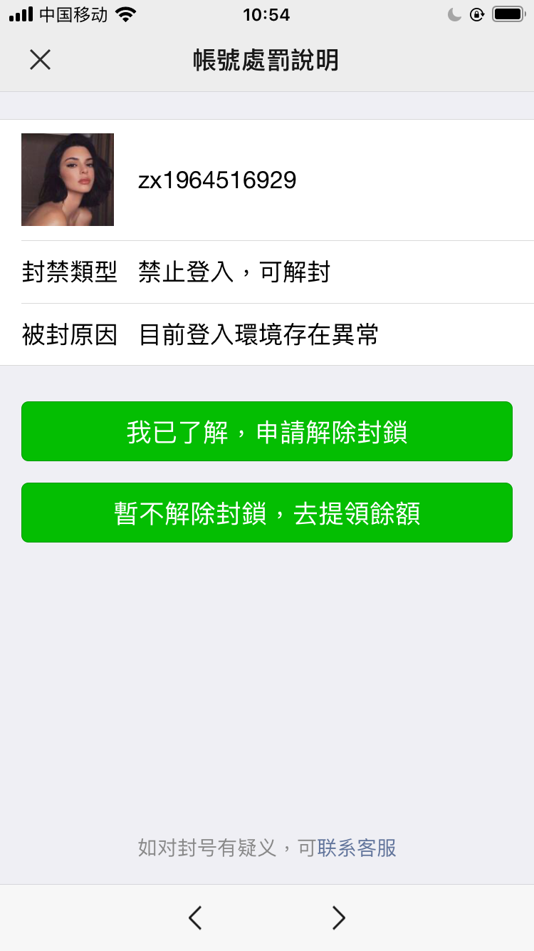 微信第二次由于环境异常封锁了我的号,朋友的协助验证次数已经用完。真是不明白为什么环境异常!我的手机我的号我的实名认证、哪里不安全了?号里扔了事情没做、该联系的人还没联系... 只求微信帮我解封,总不能环境异常一次我就找朋友一次,太麻烦。拜托了!!麻烦帮我解封!