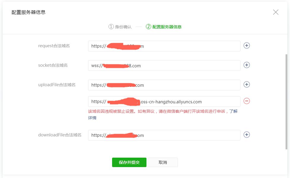 【问题】 小程序开发设置中服务器域名添加阿里云oss域名不通过