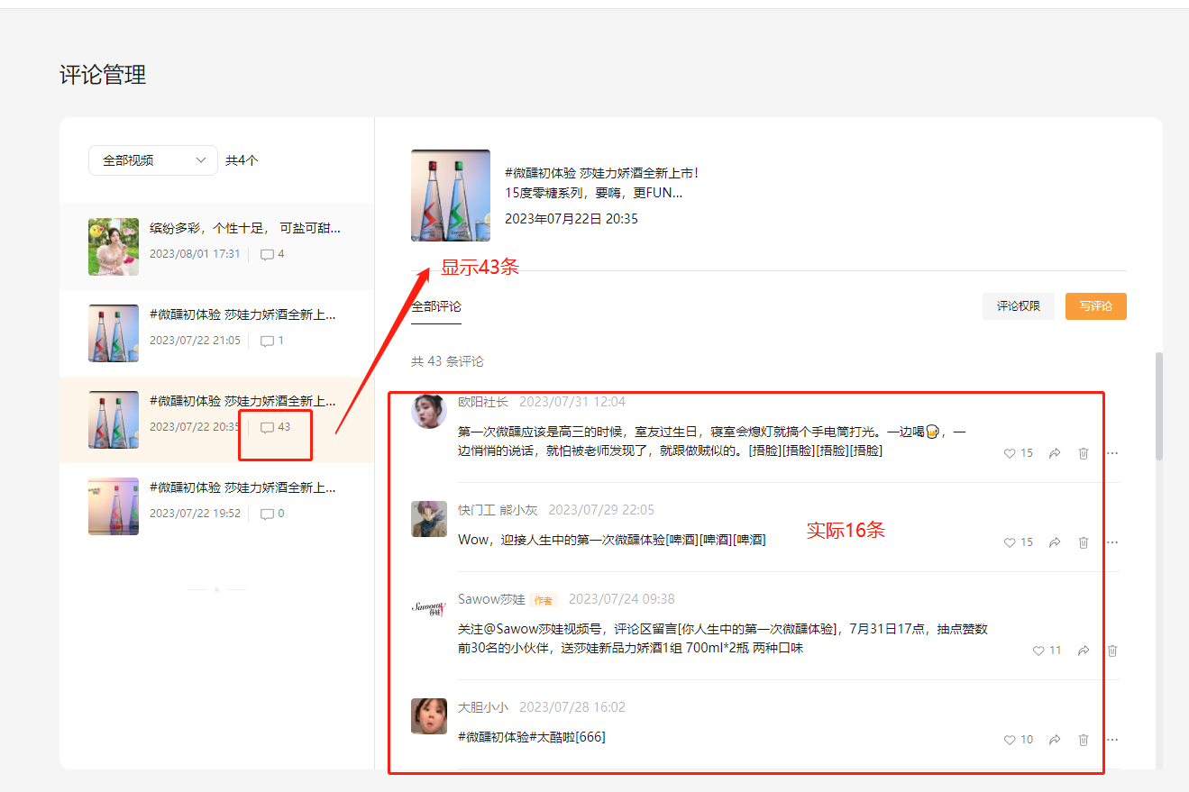 为什么视频号电脑端显示有42条评论,但是打开评论区,却只能看到几条评论?而在手机端却能看到所有评论。