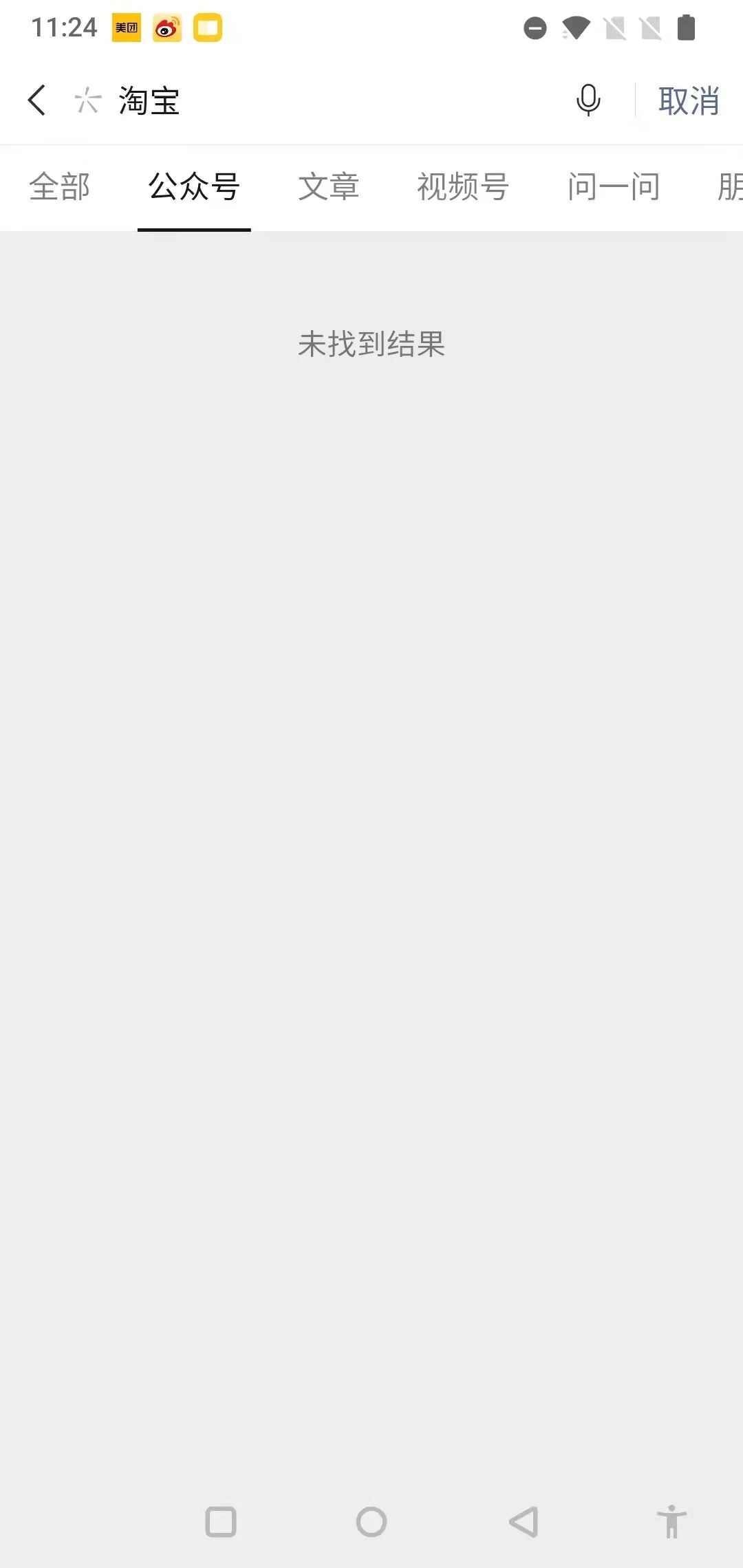 搜一搜页面页面点击其他正常,点击公众号栏显示未找到结果,