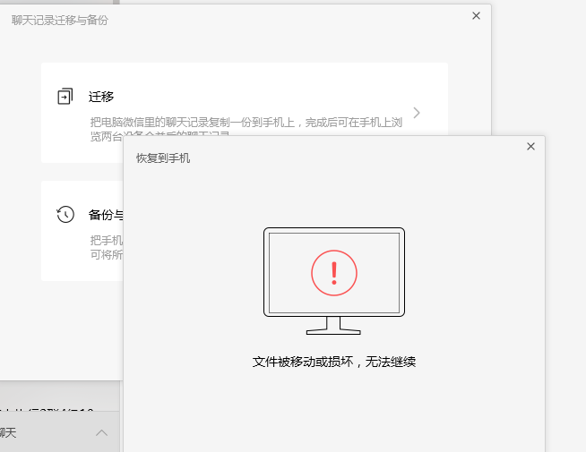 把手机的聊天记录备份后重新安装了微信软件。然后就无法恢复了。已经试过老版本的微信。也更换过电脑和手机设备。都是无法恢复。并且网络也是在同一个网络下操作的。备份的过程没有任何问题出现。备份完成后 已经确认完成了才删除的手机端微信。电脑端没有进行任何操作。希望官方能解决这个问题哪怕是把聊天记录导出到电脑端微信也可以。主要是量太大了没法挨个测试。但是测试了恢复近一年的聊天记录或者只恢复文字也都是不行。
