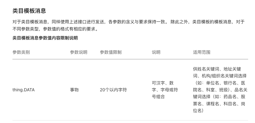 请问是推送公众号模板消息吗?类目模板每种类型的字段有要求,不符合要求就会报错:https://developers.weixin.qq.com/doc/offiaccount/Message_Management/Template_Message_Interface.html#%E7%B1%BB%E7%9B%AE%E6%A8%A1%E6%9D%BF%E6%B6%88%E6%81%AF
