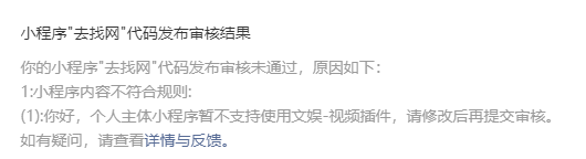 请问现在腾讯官方的视频插件个人主体小程序是否能使用,我的小程序虽然加了插件,但是暂未在代码内使用视频功能,审核的时候导致失败?