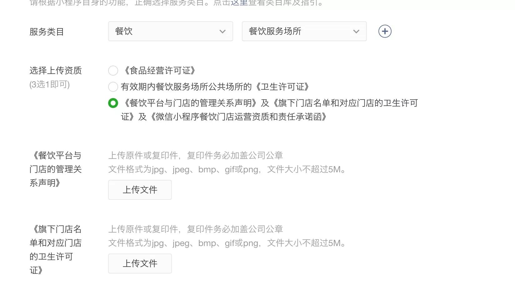 理论上操作是可以的。我们也提交了餐饮平台与门店的管理关系声明》和《旗下门店名单和对应门店的卫生许可证》和《微信小程序餐饮门店运营资质和责任承诺函》,手续齐全了。