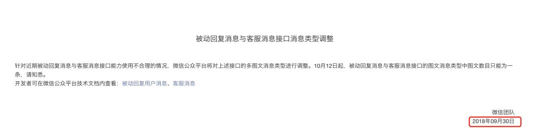今天突然出现,微信公众号的图文推送内容超过1条的均返回