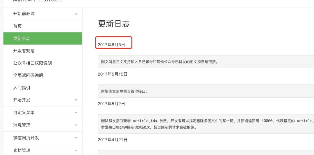 管理员怎么着也得收到个通知吧,公众号账户里怎么着也得有个通知吧,文档更新倒是挺及时,更新日志还是2017年6月份的