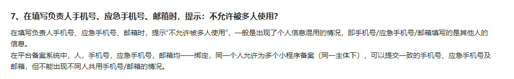 微信小程序的备案遇到 负责人的手机号码和电子邮件邮箱无法使用,提示被多人使用。实际上,该号码和邮箱没有用于任何腾讯相关的备案。但是,这样的提示,让我无法进行下一步的工作,怎么办?