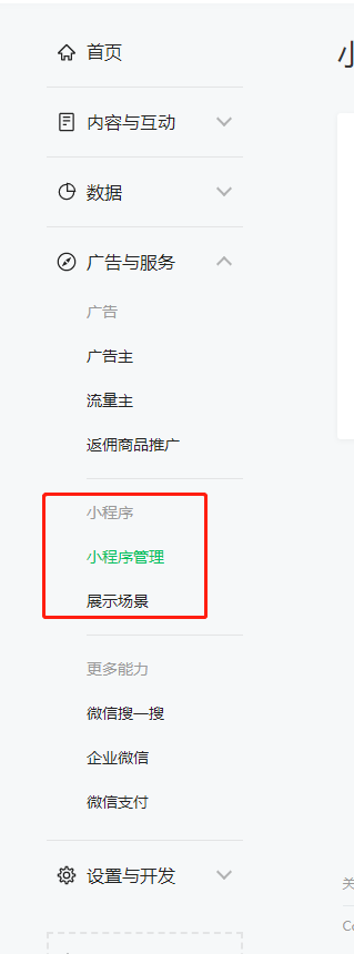 公众号登录后台管理菜单列表是这样的没有小程序管理菜单.