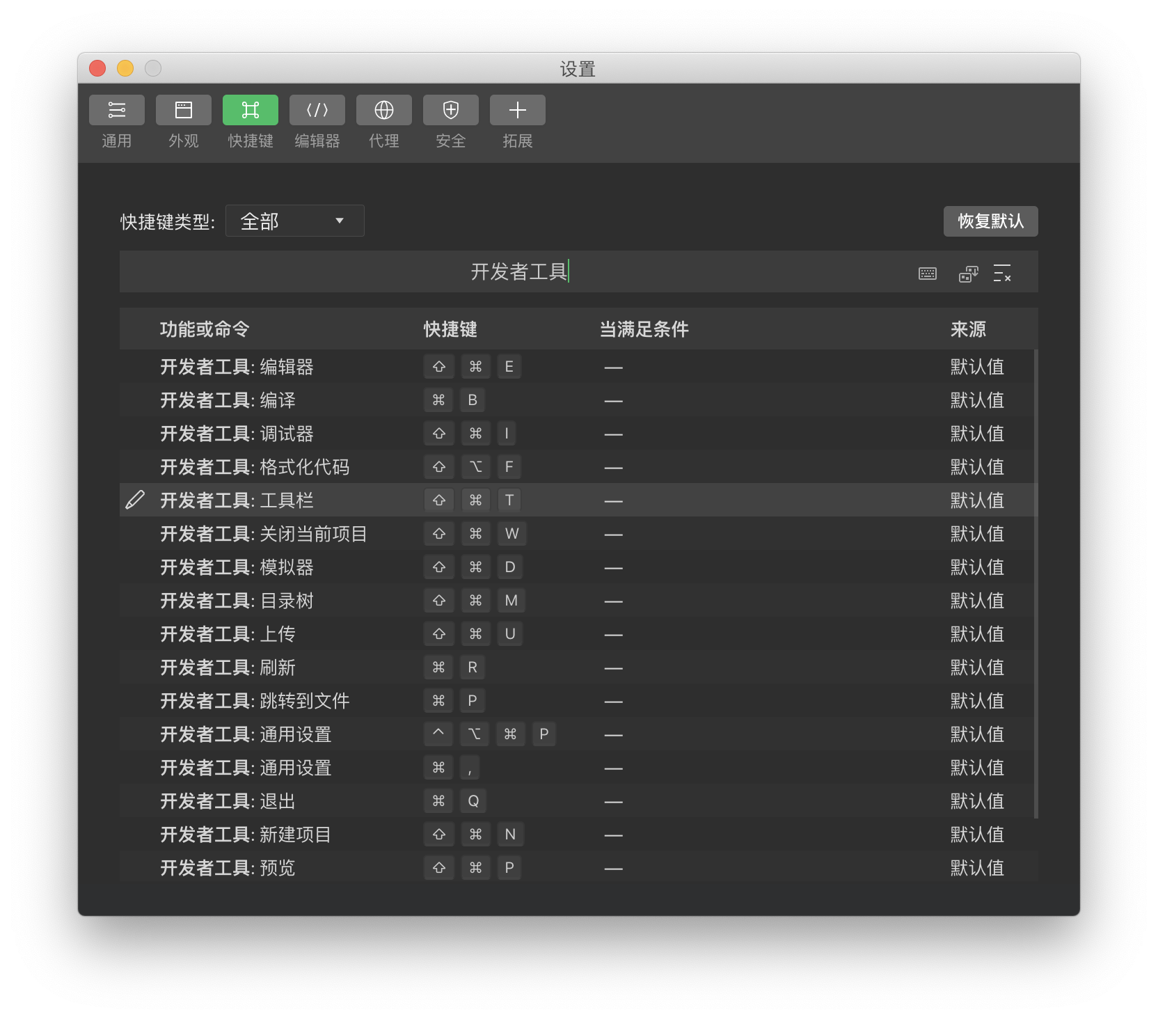 开发者工具可以设置的快捷键太少了,编辑器的很多快捷键都不能自己设置吗? 能不能开放出来?