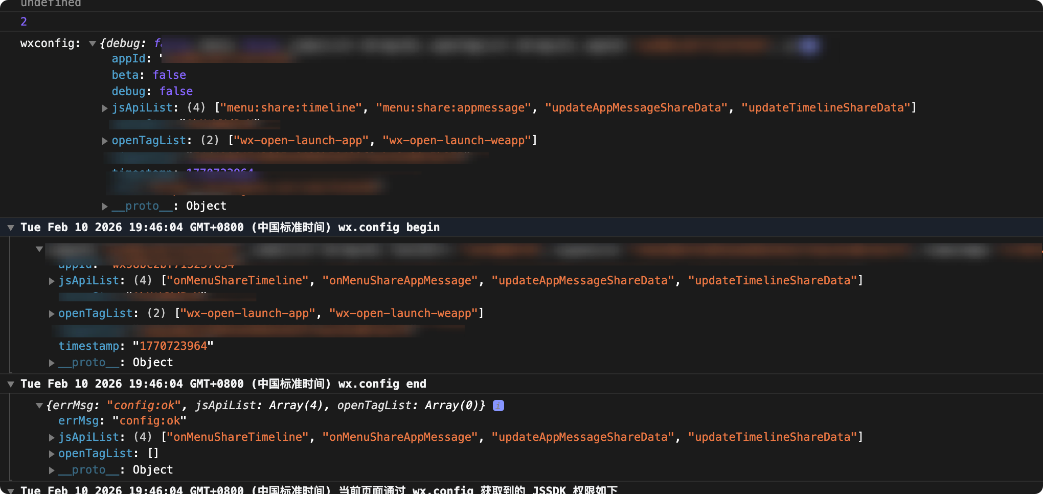 wx.config 返回成功,但是 openTagList 为空