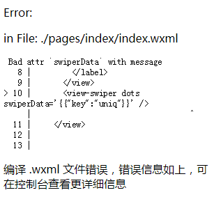 目前只有 <view-swiper swiperData='{{d1}}' /> 这种值设置方式可以通过编译