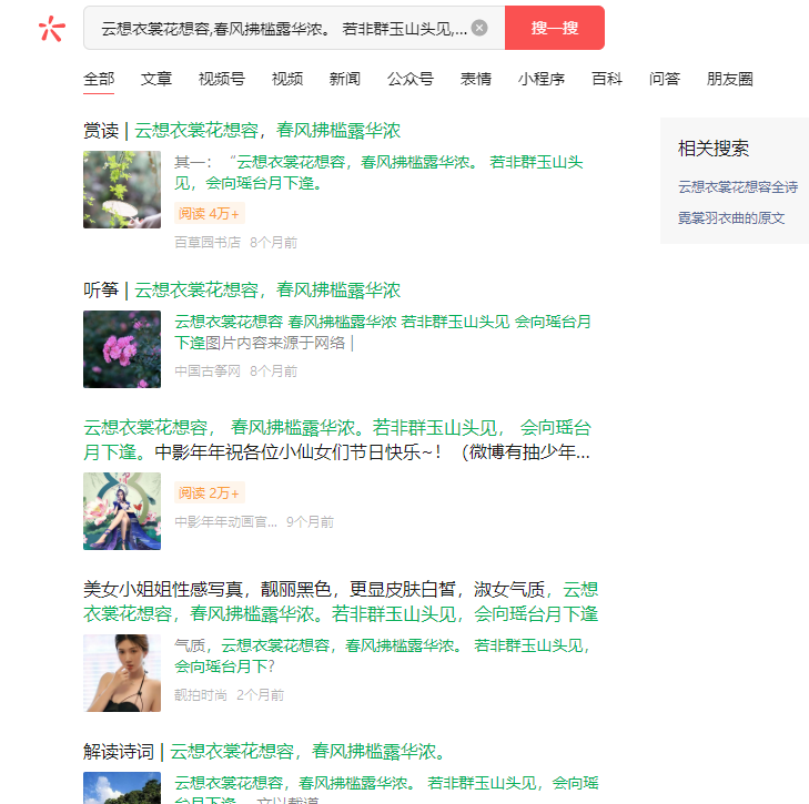 示例文章:《云想衣裳花想容,春风拂槛露华浓。 若非群玉山头见,会向瑶台月下逢。》