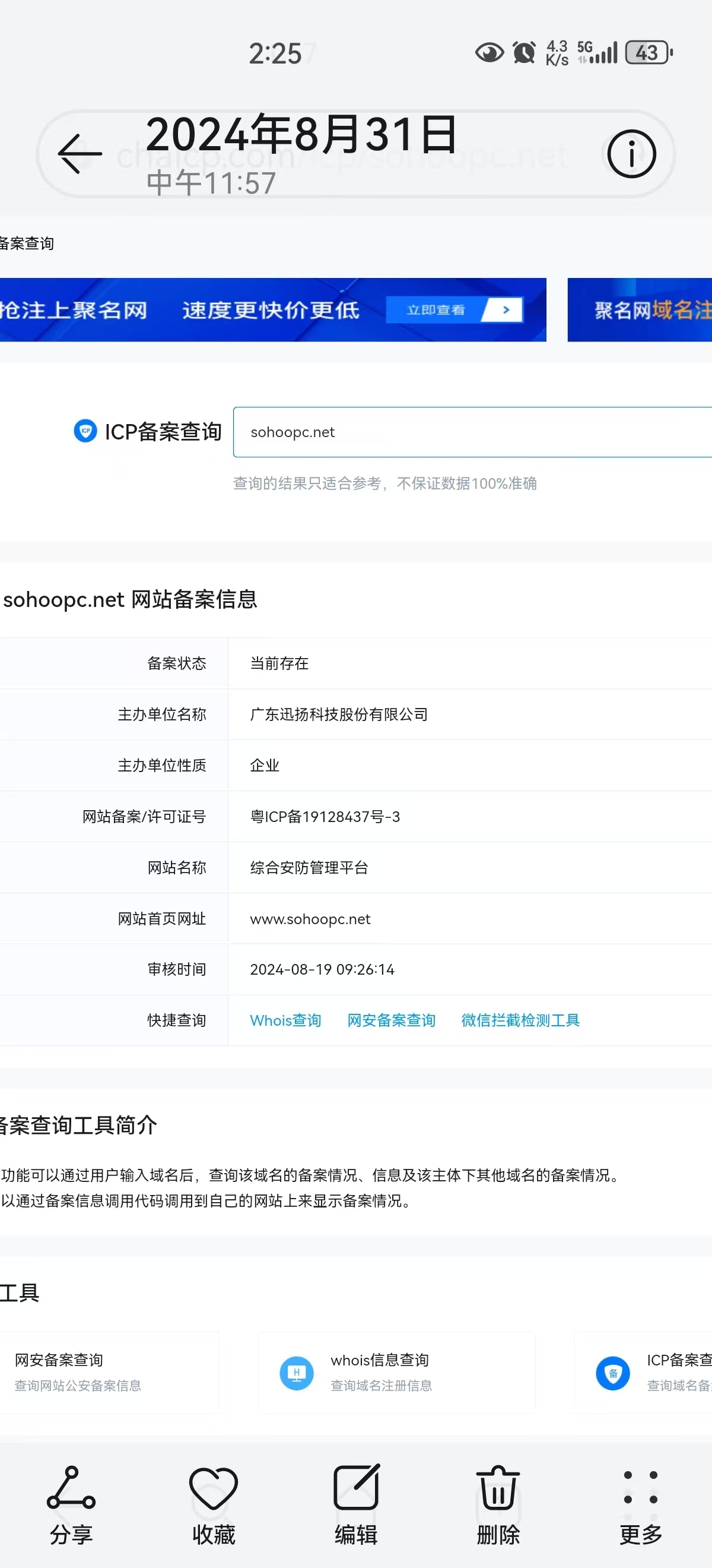 您好,域名已备案(https://sohoopc.net/),微信访问网站出现“无法确认该网页的安全性,请谨慎访问”,麻烦审核一下,拜托了!