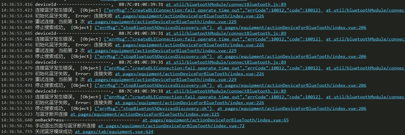 图片是第4次重新操作设备的日志输出,可以看到在1秒钟直接超时失败重连3次都是超时