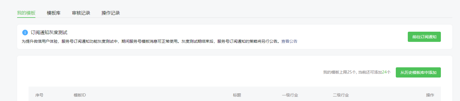 公众号 模板消息这里 没有类目模板菜单???