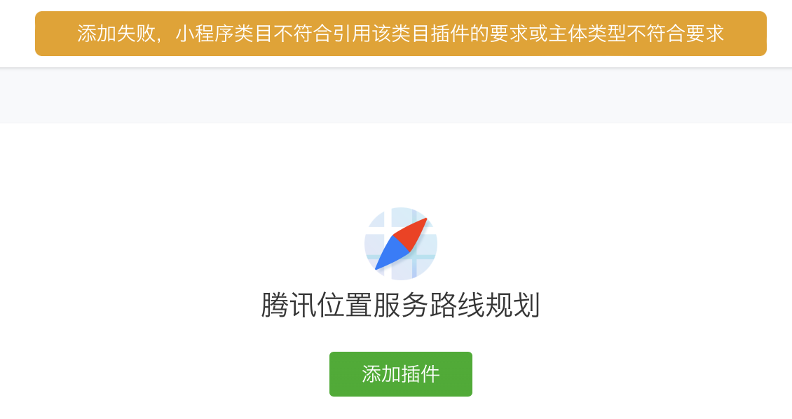 申请使用腾讯位置服务路线规划插件,显示小程序类目不符合引用该类目插件的要求或主体类型不符合要求