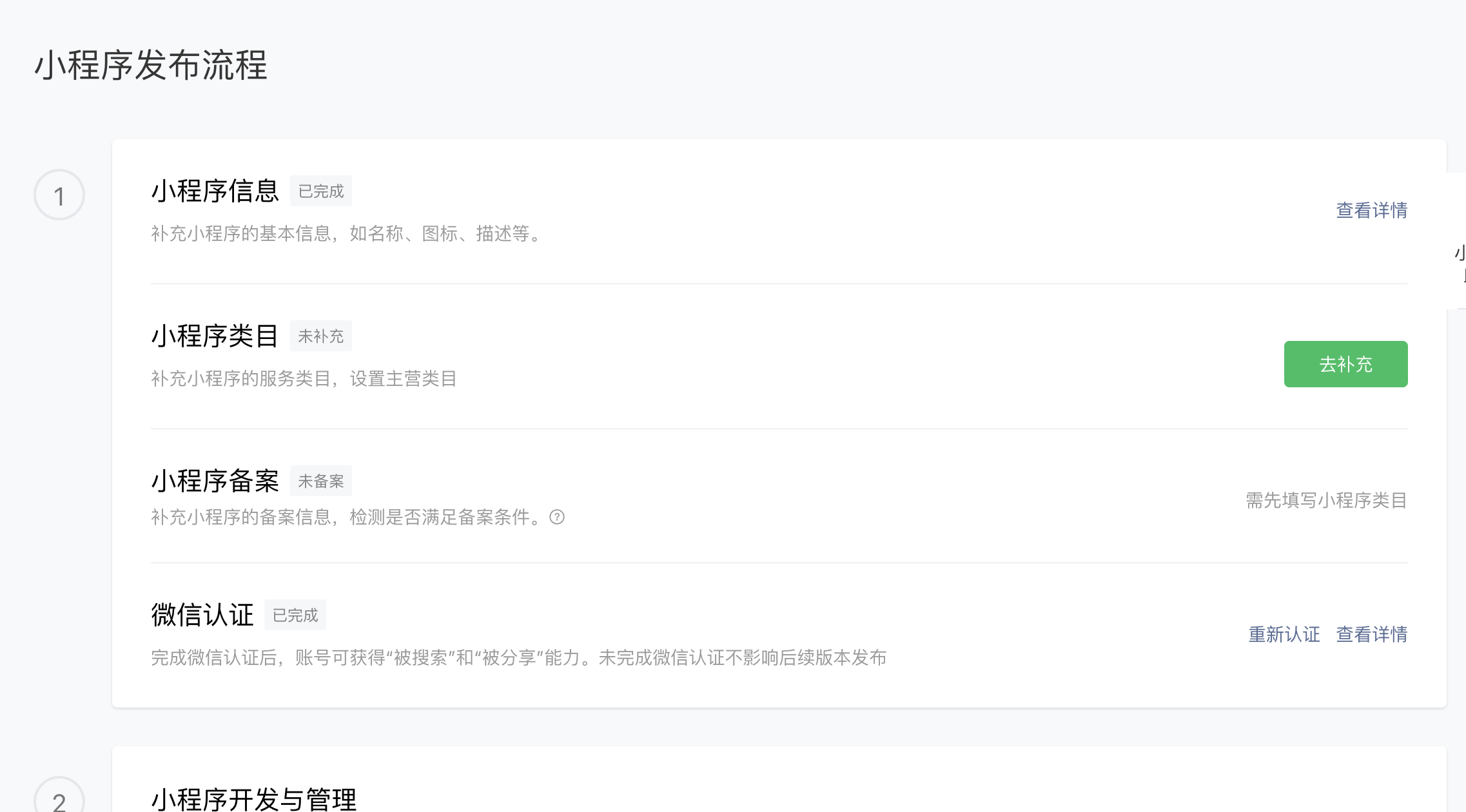 小程序信息已经填写,也进行了认证,点击查看详情提示补充信息