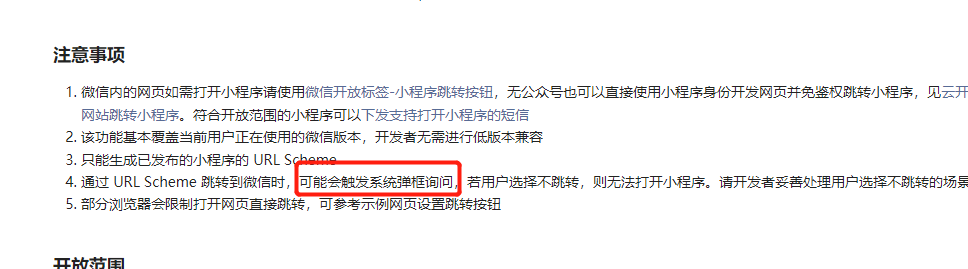 从其他 app 跳转微信打开小程序,或者从微信里点击链接打开小程序,有时候提示确定弹框有时候没有,文档上只说可能会触发,想确定什么情况下会触发弹框