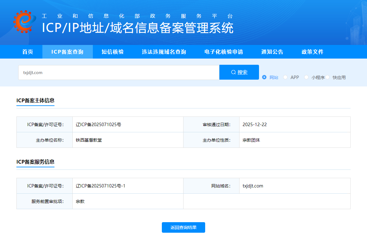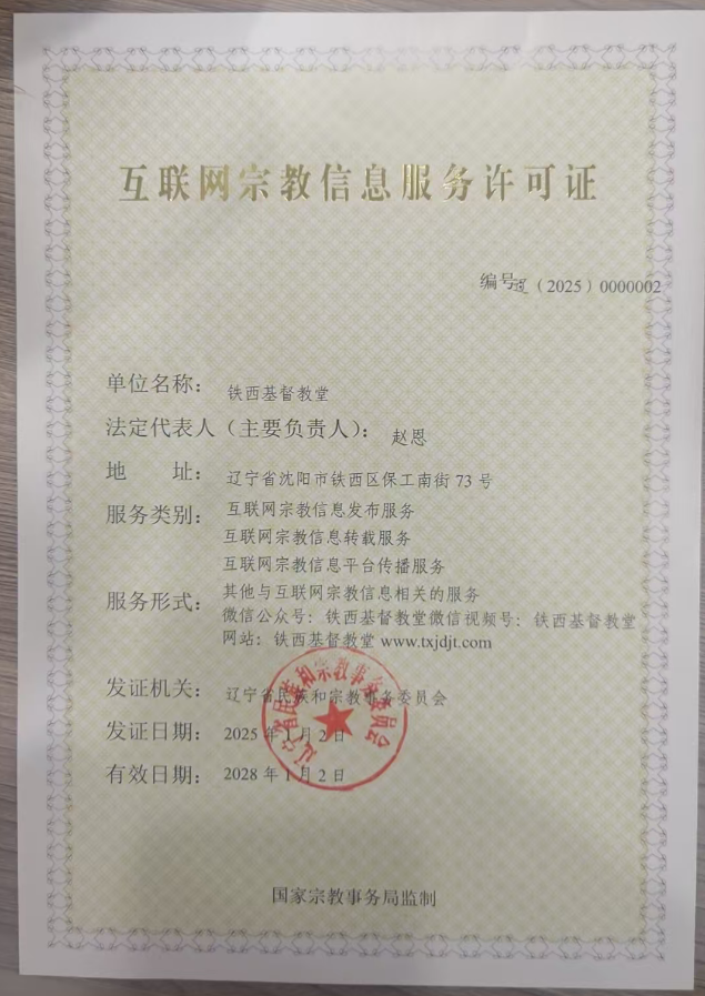 此外链为基督教,辽宁铁西基督教堂官网,已取得《互联网宗教服务信息许可证》并按要求规范网站内容,合法合规。请给予恢复,谢谢!