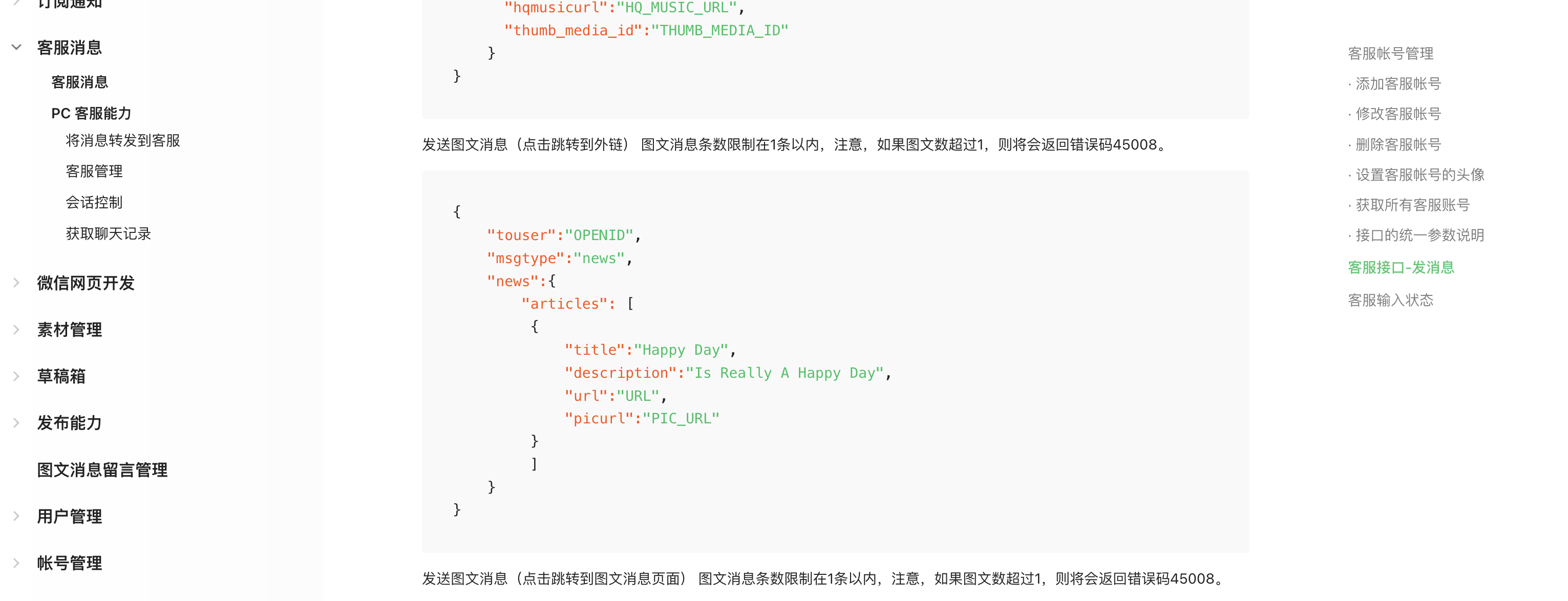 客服消息:https://developers.weixin.qq.com/doc/offiaccount/Message_Management/Service_Center_messages.html#%E5%AE%A2%E6%9C%8D%E6%8E%A5%E5%8F%A3-%E5%8F%91%E6%B6%88%E6%81%AF